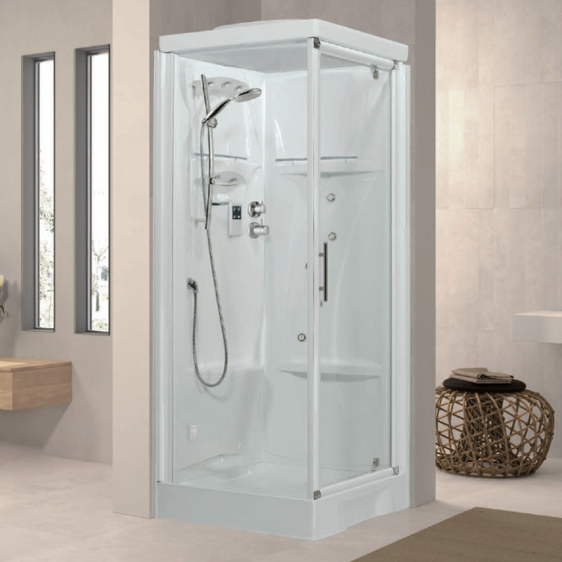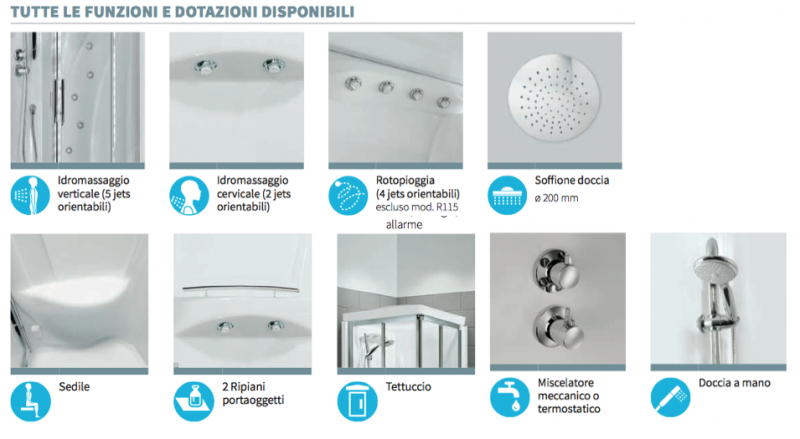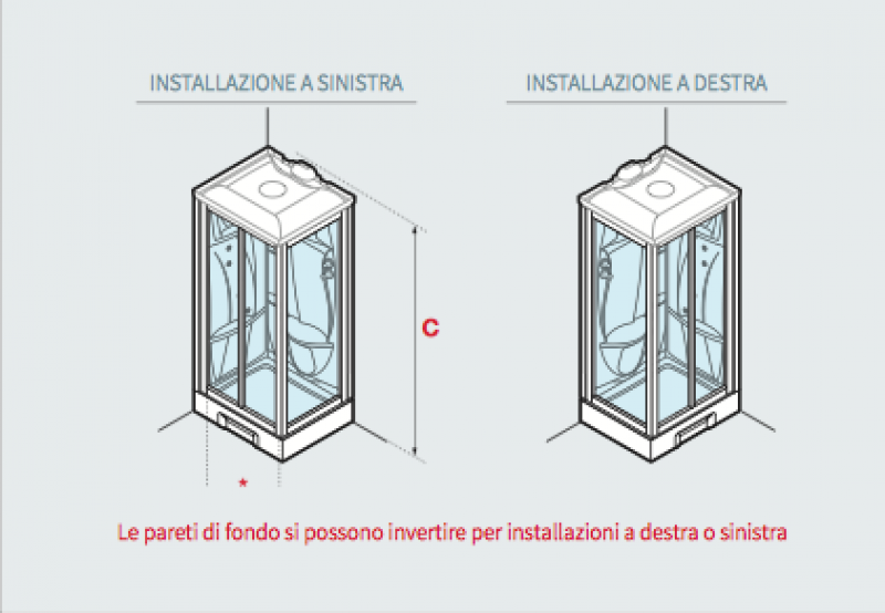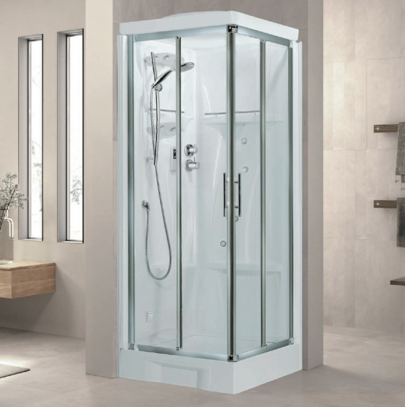 La garanzia Novellini per un prodotto collaudatissimo nella categoria cabine doccia idromassaggio, New Holiday offre la soluzione definitiva a tutti i problemi di umidità e fuoriuscita d' acqua nel vostro bagno, donando allo stesso grande impatto estetico, confort e soprattutto relax grazie alle sue funzioni idromassaggio, non dimenticando l' incredibile rapporto qualità/prezzo. Cabina doccia completa di pannelli a parete in metacrilato bianco, pareti in cristallo temperato trasparente 4 mm. completi di trattamento antigoccia Crystal Clear, piatto doccia in metacrilato bianco, piletta di scarico, miscelatore meccanico/termostatico, doccetta a mano saliscendi, sedile, ripiani portaoggetti, idromassaggio verticale (5 jets orientabili), idromassaggio cervicale (2 jets orientabili), rotopioggia (4 jets orientabili), soffione doccia nel tetto (solo nelle versioni con tettuccio), con o senza tettuccio . Disponibile nelle seguenti misure e caratteristiche: 2P120x80 cm. apertura 1 anta scorrevole e 1 fissa in linea con fisso laterale, SF100x80 cm. apertura 2 ante a soffietto con fisso laterale, 2P100x70 cm. apertura 1 anta scorrevole e 1 fissa in linea con fisso laterale, A80x80 cm. apertura 2 ante scorrevoli e 2 fisse, A90x90 cm. apertura 2 ante scorrevoli e 2 fisse, GF80x80 cm. apertura 1 anta battente con fisso laterale e GF90x90 cm. apertura 1 anta battente con fisso laterale. I profili delle pareti in vetro sono disponibile nei colori bianco, silver o cromo. La cabina é installabile nella versione destra o sinistra invertendo le pareti di fondo (vedi foto verso). Per effettuare l' ordine selezionare le caratteristiche nel menù a tendina: versione e misure, miscelatore meccanico o termostatico, con o senza tettuccio, colore profilo. La cabina é disponibile anche nella versione centro stanza o in nicchia tra 3 pareti e con vetri serigrafati o acqua. Per un preventivo contattare il servizio clienti. Il trasporto si intende standard, per esigenze particolari ( consegna al piano, consegna su appuntamento...) contattare il servizio clienti per un preventivo.