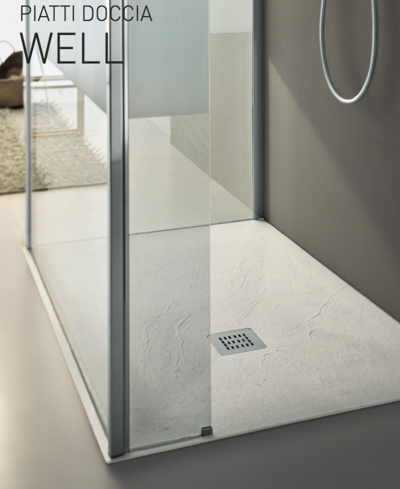 NOVITA' 2016 !! Piatti doccia Arblu Well in pietrablu ad effetto pietra spaccata, anche sui bordi, composto da minerali e resine, altezza 3,0 cm., installabile sopra o a filo pavimento, resistente al pari della pietra, resistente agli sbalzi termici e ai raggi UV, antibatterico, antisdrucciolo, resistente alle macchie, setoso al tatto, inalterabile nel tempo. Disponibile in 5 finiture ( bianco, avorio, ghiaia, corda e antracite ) visualizzabili nelle foto sopra e in tantissime misure ( anche su misura, contattare per informazioni il servizio clienti ). Pietrablu é un materiale pregiato ed esteticamente d' impatto. La sua versatilità permette la realizzazione di rivestimenti di pareti utilizzando lo stesso materiale, per dare alla zona doccia un tocco di estrema eleganza (per informazioni vedere nei prodotti correlati in fondo alla pagina). Completo di piletta ø 9,0 cm ribassata h=5,5 cm. e copripiletta in acciaio inox AISI-304 marchiata Arblu. Da oggi il copripiletta é disponibile, su richiesta e con un sovrapprezzo di 23 €, con verniciatura in tinta (selezionare nei prodotti correlati in fondo alla pagina). Per effettuare un ordine selezionare nelle finiture la misura desiderata, continuare con l' acquisto e scrivere nell' apposito spazio "informazioni aggiuntive sui prodotti" il colore desiderato. Il trasporto si intende standard, per esigenze particolari ( consegna al piano, consegna su appuntamento...) contattare il servizio clienti per un preventivo.