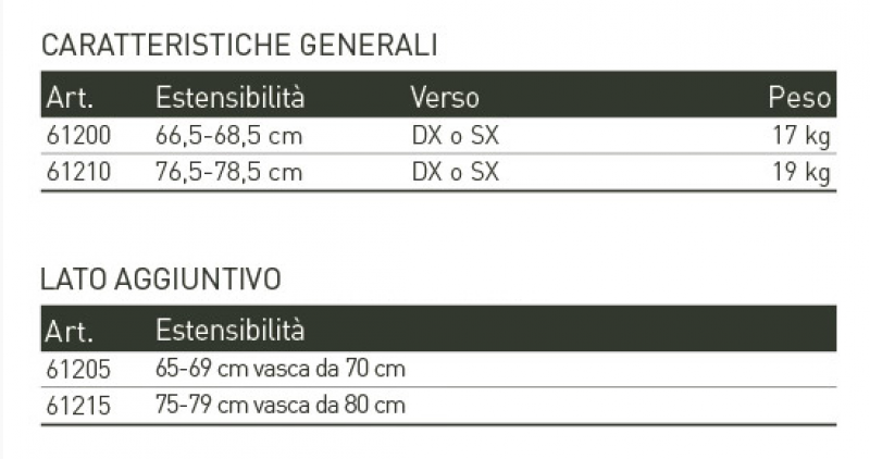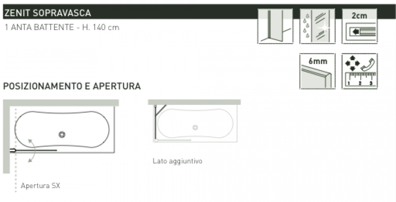 Parete sopravasca Dedalo, senza telaio, 1 anta battente, guarnizione ultratrasparente in pvc antimuffa di ridotte dimensioni per una facile pulizia, profili dotati di tappo di chiusura, apertura interno/esterno a 180°, estensibilità 2,0 cm., disponibile nelle misure 66,5-68,5 e 76,5-78,5 cm.. Cristallo temperato spessore 6 mm. nelle finiture trasparente, piumato e satinato. Profili in alluminio nelle finiture bianco, argento satinato e argento lucido. Selezionare il prodotto secondo il modello, vetro e profilo desiderati. Specificare sempre il verso di apertura continuando con l' acquisto e scrivendo nell' apposito spazio "informazioni aggiuntive sui prodotti" il verso Dx o Sx (vedi schemi). Per il sopravasca con vetro piumato o satinato i tempi di consegna sono di 25/30 giorni. Per aggiungere il trattamento protezione vetro selezionare nei prodotti correlati in fondo la pagina. Il trasporto si intende standard, per esigenze particolari ( consegna al piano, consegna su appuntamento...) contattare il servizio clienti per un preventivo.