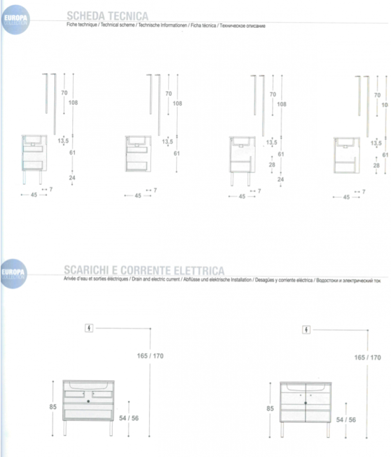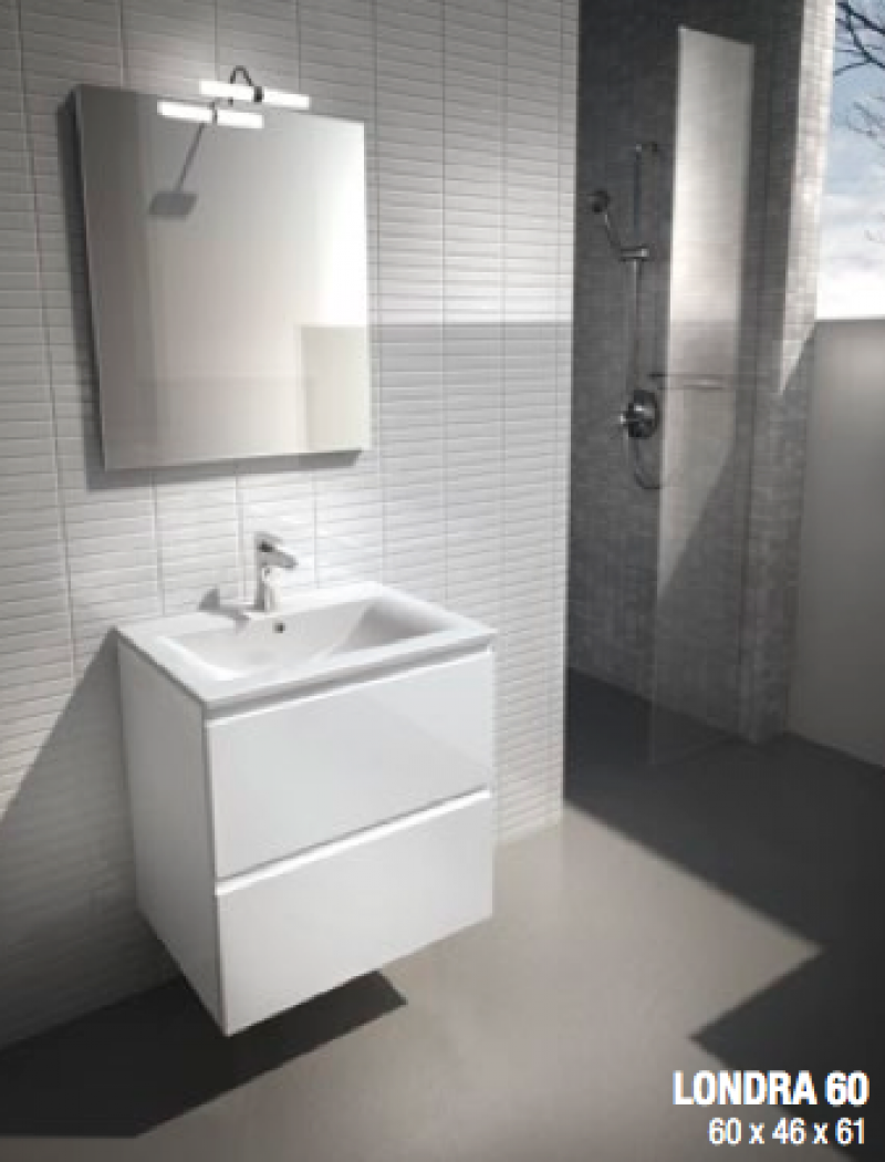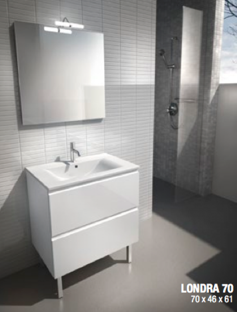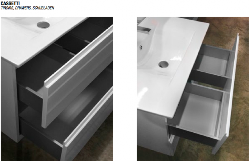 Mobili sospesi o su piedi monoblocco completi di specchiera e faretto, disponibili nelle finiture bianco lucido, corda o titanio opaco e effetto legno ornello miele e ornello chiaro, cassetti estraibili con presa maniglia integrata e chiusura ammortizzata, top in ceramica o tecnoplan con lavabo integrato spessore 1,8 cm., specchiera filo lucido completa di faretto led 7 W. I fianchi dei mobili sono in laminato idrofugo V100 e i cassetti in MDF rivestito in Pvc. I mobili sono disponibili sospesi o su piedi. Per avere in dotazione i piedini, selezionare nei prodotti correlati ed aggiungere al carrello. Misure disponibili basi : LxPxH, 60x45x61, 70x45x61, 80x45x61, 120x45x61 cm.( quest' ultimo con doppio lavabo ). Misure disponibili specchiere : LxPxH, 60x2,3x70, 70x2,3x70, 80x2,3x70, 120x2,3x70 cm. ( quest' ultima con doppia lampada Led ), abbinate alle rispettive basi. Non completi di miscelatore, piletta e sifone. Il trasporto si intende standard, per esigenze particolari ( consegna al piano, consegna su appuntamento...) contattare il servizio clienti per un preventivo.