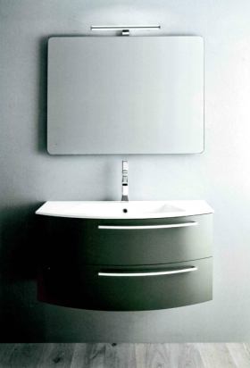 Mobile sospeso curvo, completo e versatile, pensato per sfruttare al meglio gli spazi ridotti, proposto in 3 diverse finiture di legno melaminico (Pino Grigio, Quercia Vintage 1 e Quercia Vintage 2) e in 39 colori laccati opachi o lucidi (vedi sezione Finiture), composto da 2 cassetti estraibili con maniglia "R" curva cromata e chiusura ammortizzata, top in resina lucida Tecnoblu Plano con ampio lavabo integrato spessore 1,2 cm. (vedi scheda lavabo resina) oppure top in Pietrablu Trendy ad effetto pietra, composto da minerali e resine con lavabo integrato (vedi scheda lavabo Trendy), spessore 1,8 cm., resistente al pari della pietra, resistente agli sbalzi termici e ai raggi UV, antibatterico, resistente alle macchie, setoso al tatto, inalterabile nel tempo. Disponibile in 6 finiture ( bianco, ghiaia, cappuccino, cacao, cemento e antracite ). Ottimo in abbinamento nel bagno al piatto doccia Trendy. La scocca e i frontali sono realizzati in conglomerato ecologico di legno idrorepellente V70 classe E1, atossico e a basso contenuto di formaldeide. I cassetti sono in multistrato di betulla, dotati di guide metalliche "tipo quadro" con sistema di rientro assistito e con possibilità di regolazione. Misure disponibili basi : LxPxH, 70x36/50x48, 95x36/50x48 e 105x36/50x48 cm.. Non completi di specchiera, miscelatore e piletta, completo di sifone. Selezionare il prodotto delle misure e finiture desiderate e prima di concludere l' ordine indicare nell' apposito spazio "informazioni aggiuntive sui prodotti" il colore scelto, sia per il mobile che per il piano Trendy, visibile sulle finiture colori colori o melaminici. Il trasporto si intende standard, per esigenze particolari ( consegna al piano, consegna su appuntamento...) contattare il servizio clienti per un preventivo.